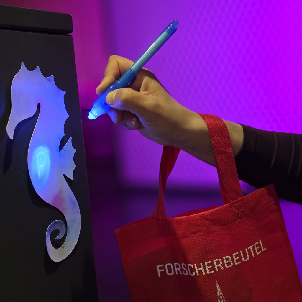 Ausgestattet mit Equipment aus dem bunten Forscherbeutel könnt Ihr verborgene Hinweise quer durch unsere Ausstellung entschlüsseln.
